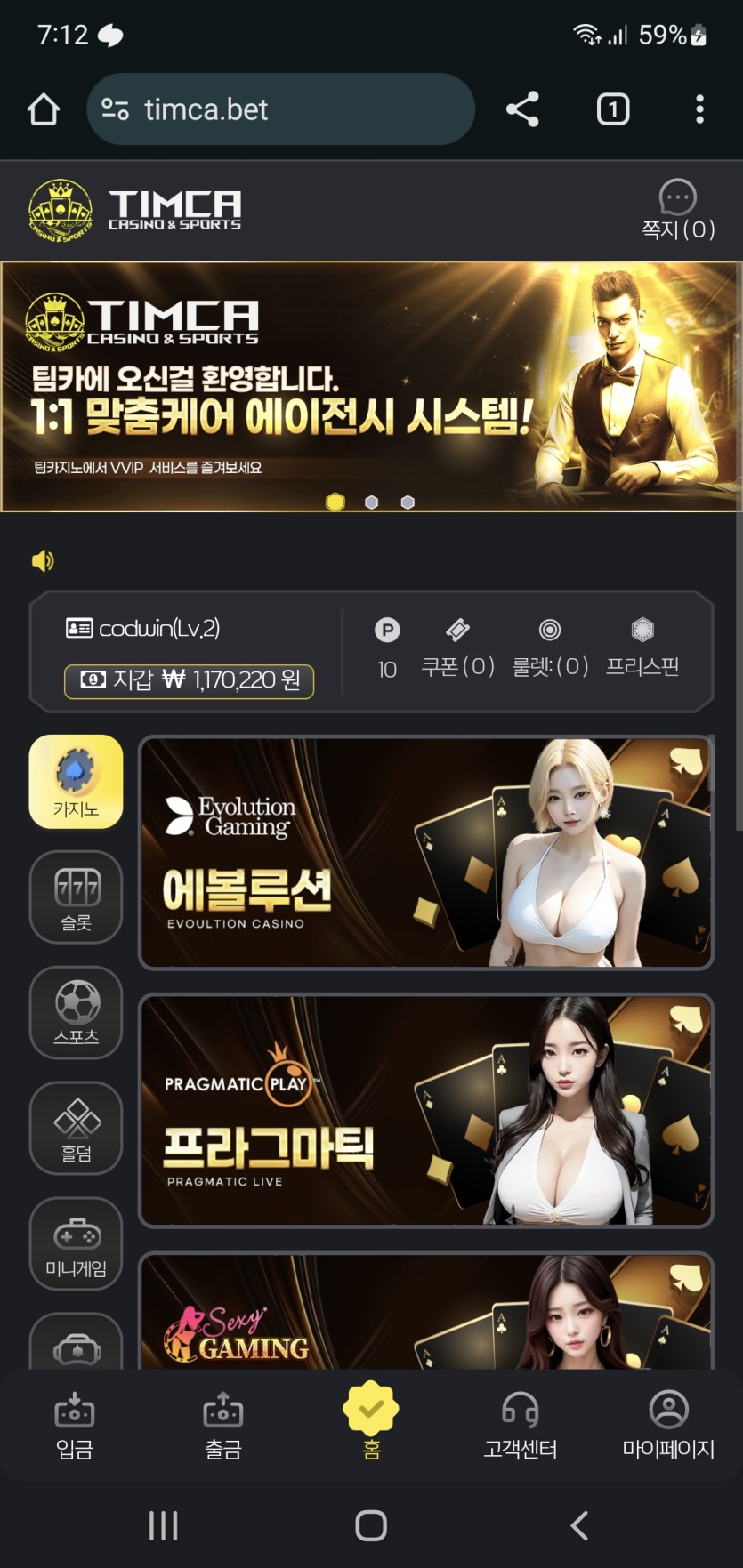 첫충 10프로 롤링 300프로이길래 저롤링을 선호하지만 10프로 첫충보너스가 나쁘지않아서 자주 이용했는데 처음에는.환전 나오다가 어느정도 하다보니 환전을 계속안해줌. 은행점검이다 이상한 핑계를 대면서 환전을 며칠 미룬적도 있었고 나중에는 오전 10시 넘어야 환전해줌 새벽에는 게임 하지말라는 소리인가... 충전도 100만원씩 하다보니 환전안나오면 불안불안함.... 그러다 결국 사단남. 100씩 이틀간 200잃고 다음날 50충해서 117만원 으로 겨우 67만원 복구했는데 이벤트 악용했다며 검수팀 의뢰한다고 환전 미루더니 결국 쌩까고 탈퇴처리시킴. 이러면 안되는데 욕한번 해야갰다 진짜 ㄱ ㅐㅅ ㅐ끼들