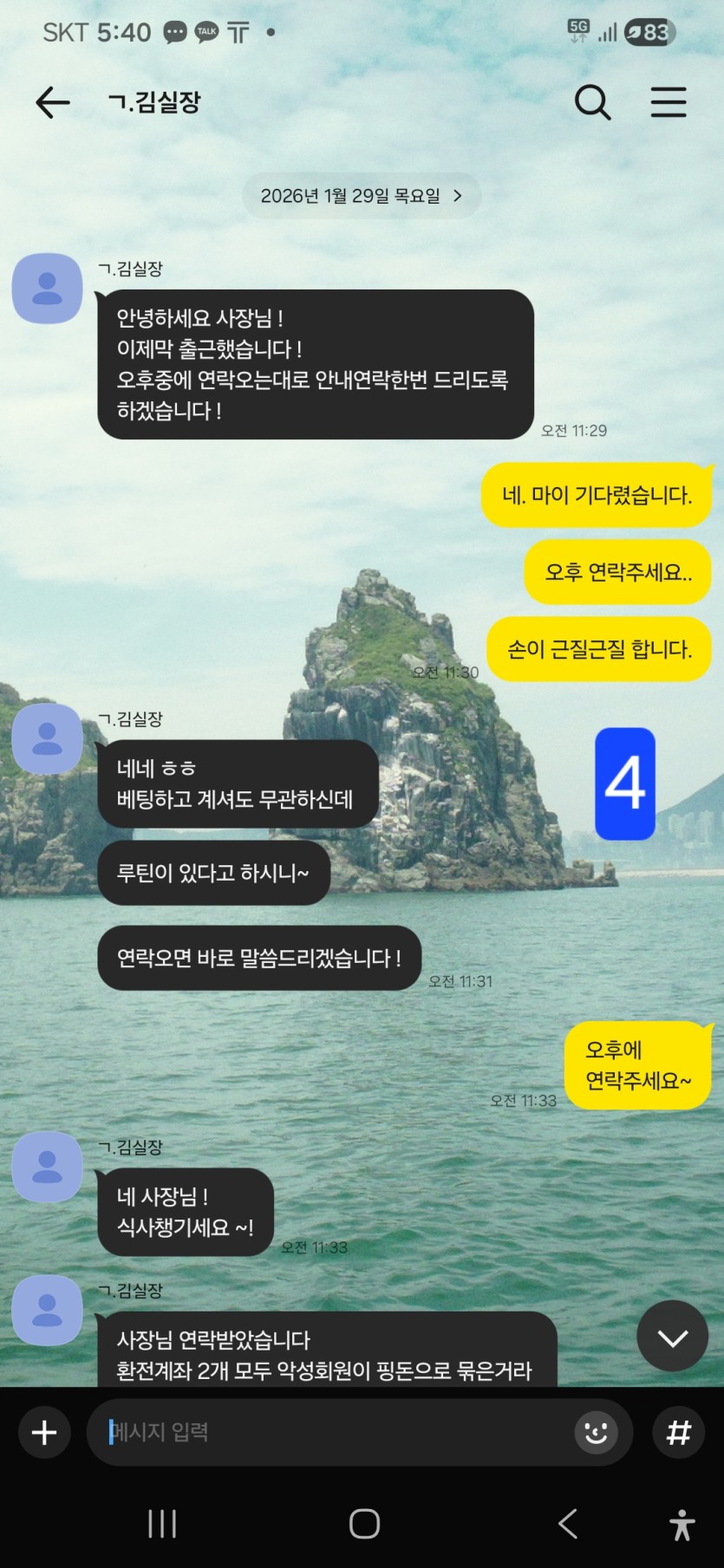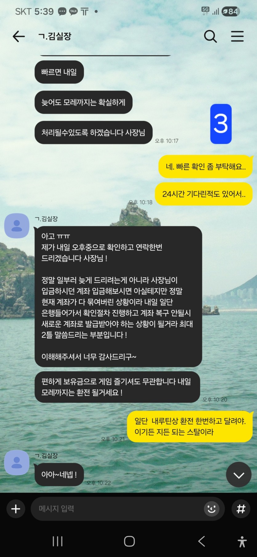 2.몇시간 후 지금 환전장 교체중에 있다며 대기요청함.