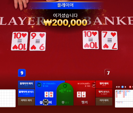 플레이어 오늘 엄청나오는데 뱅커만 계속 고집하다가