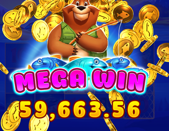 BNG 피싱베어 돌리는데 곰이 연속으로 물고기 뽑아내더니 메가윈으로 5만9천 넘게 찍혔습니다