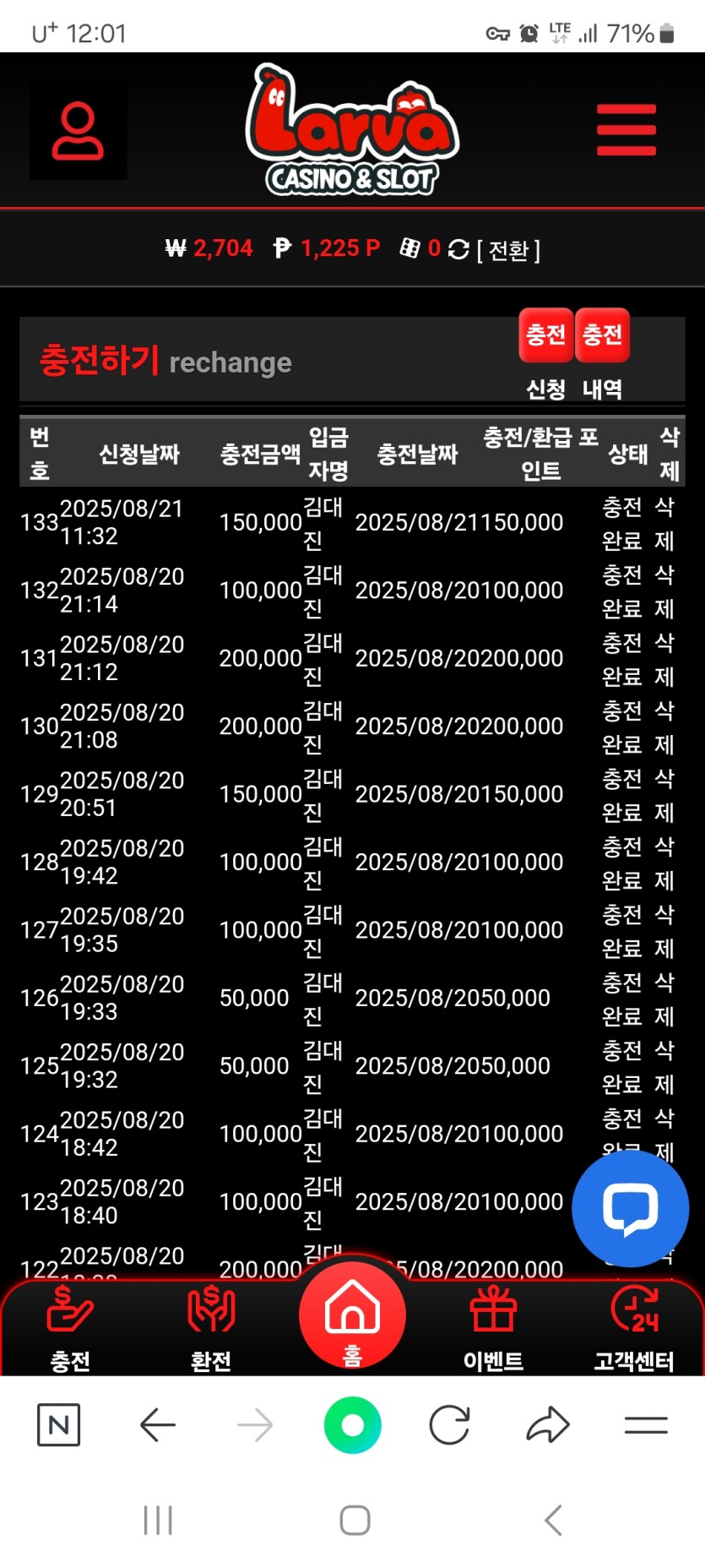 오~ 이벤트도 많고 충환전도 빠르다니 좋네요