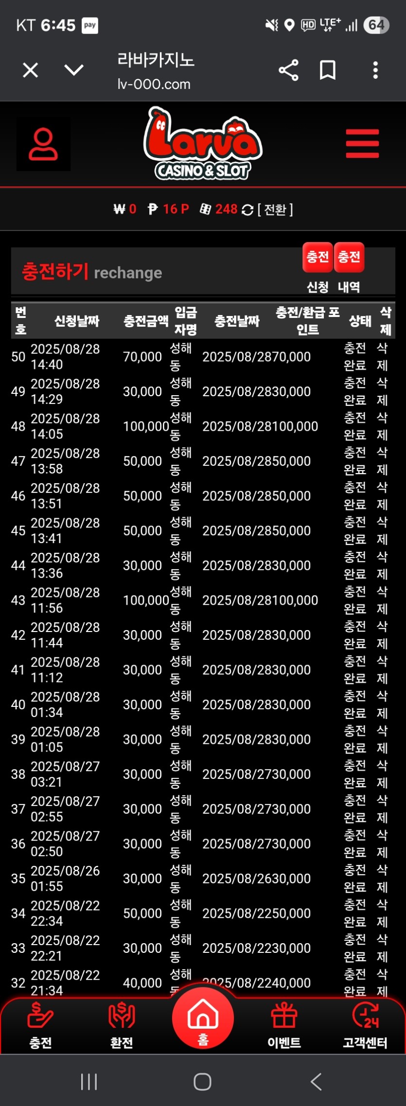 중간에 트리플을 3번이나 먹엇는데 모두다 노배당 일반 150배 400원배팅이라 수익이 나긴 커녕 잃은거 복구 수준일뿐이구여.