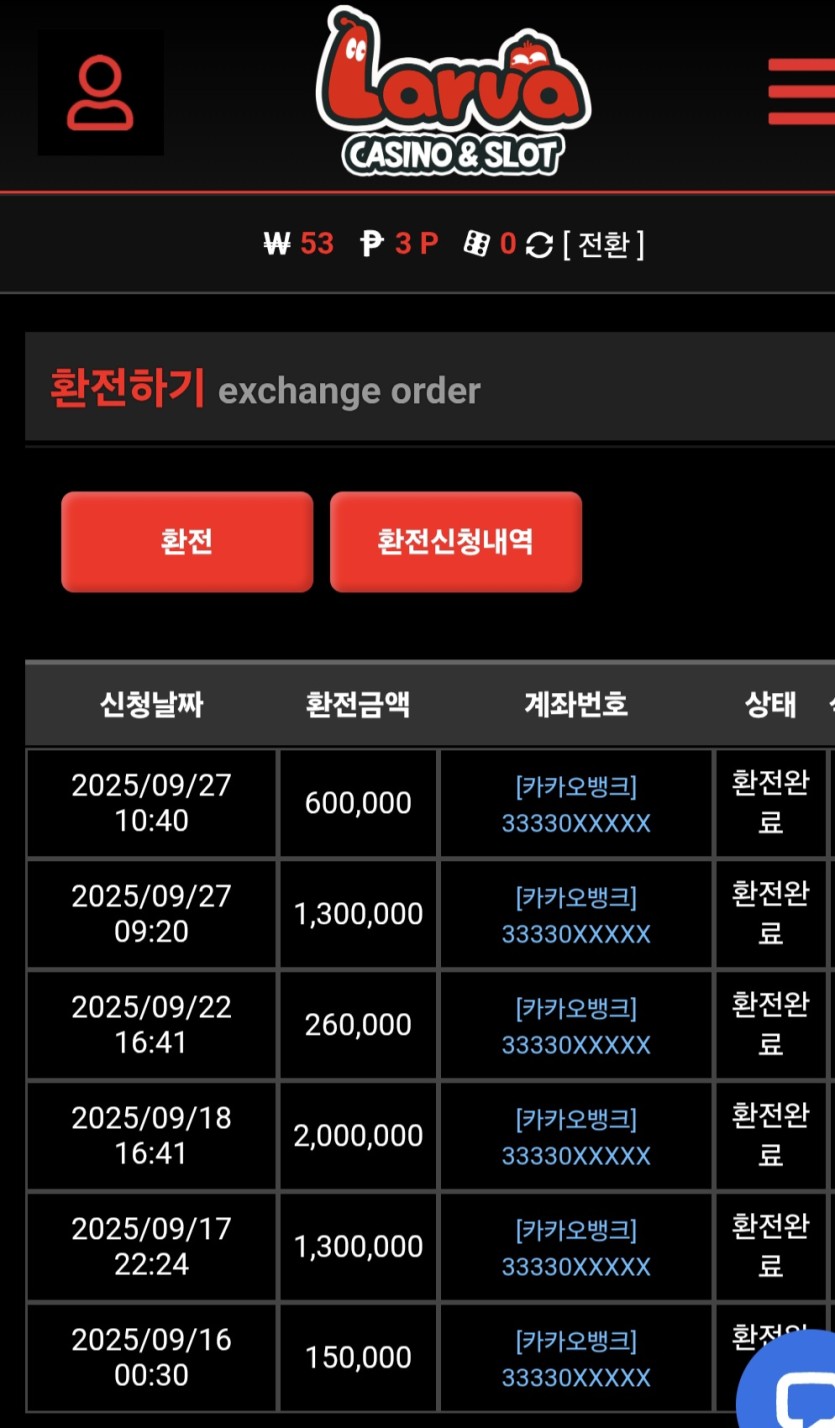 그리고 제일 중요한게 제가 슬롯파라서 잭팟이 잘 터지냐가 중요한데 진짜 환수율이 개미쳤어요ㅋㅋㅋ몇판 하면 그냥 바로 잭팟입니다!! 충전도 빠른데 환전이 기가 막힙니다???????? 아래 9월 환전 내역인데 8월 내역이 진짜 기가막혔습니다
