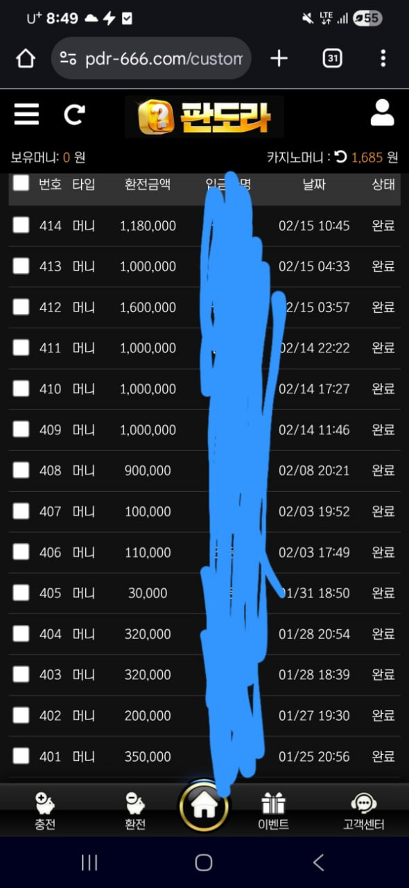 판도라가 지금 미친명절 이벤트 하고있는거 아시나요? 2.9~2.18일 까지의 누적충전금에 따라 포인트를 19일에 정산해 준답니다 최대 50;; 뿐만 아닌 당일 누적포인트 이벤트로도 50까지 챙길수 있다는 사실;; 저는 소액베터라 5만 포인트까지는 간간히 먹고있는데 이 이벤트로 인해 금일 몇백 땐겼네요 ㅋㅋ 충전방식도 단순하고 좋고 빨라서 판도라아니면 전 안되겠네요 ㅋ 그리고 당일 페이백 등등 많은 이벤있으니 많관부입니다잇 ! 환전내역 자랑좀 하고갈게요~