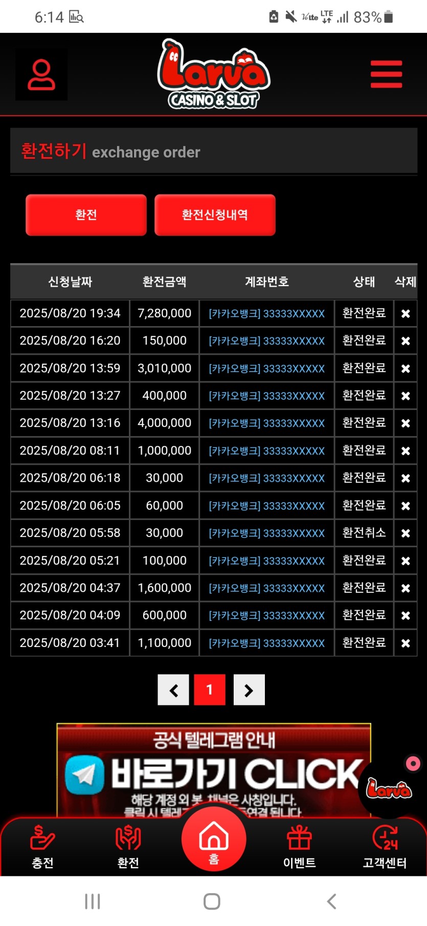 뱅커나이쓰님의 댓글 뱅커나이쓰 작성일 2025.08.22 19:50 즐거우셨던 경험 잘 들었습니다 오늘도 행운이 함께하시길요 추천0비추천0 즐거우셨던 경험 잘 들었습니다 오늘도 행운이 함께하시길요