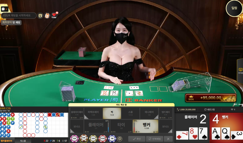 의상 화려한 것도 좋지만 딜러가 웃는 눈빛이 훨씬 매력적임 수익으로 마무리해서 좋네요