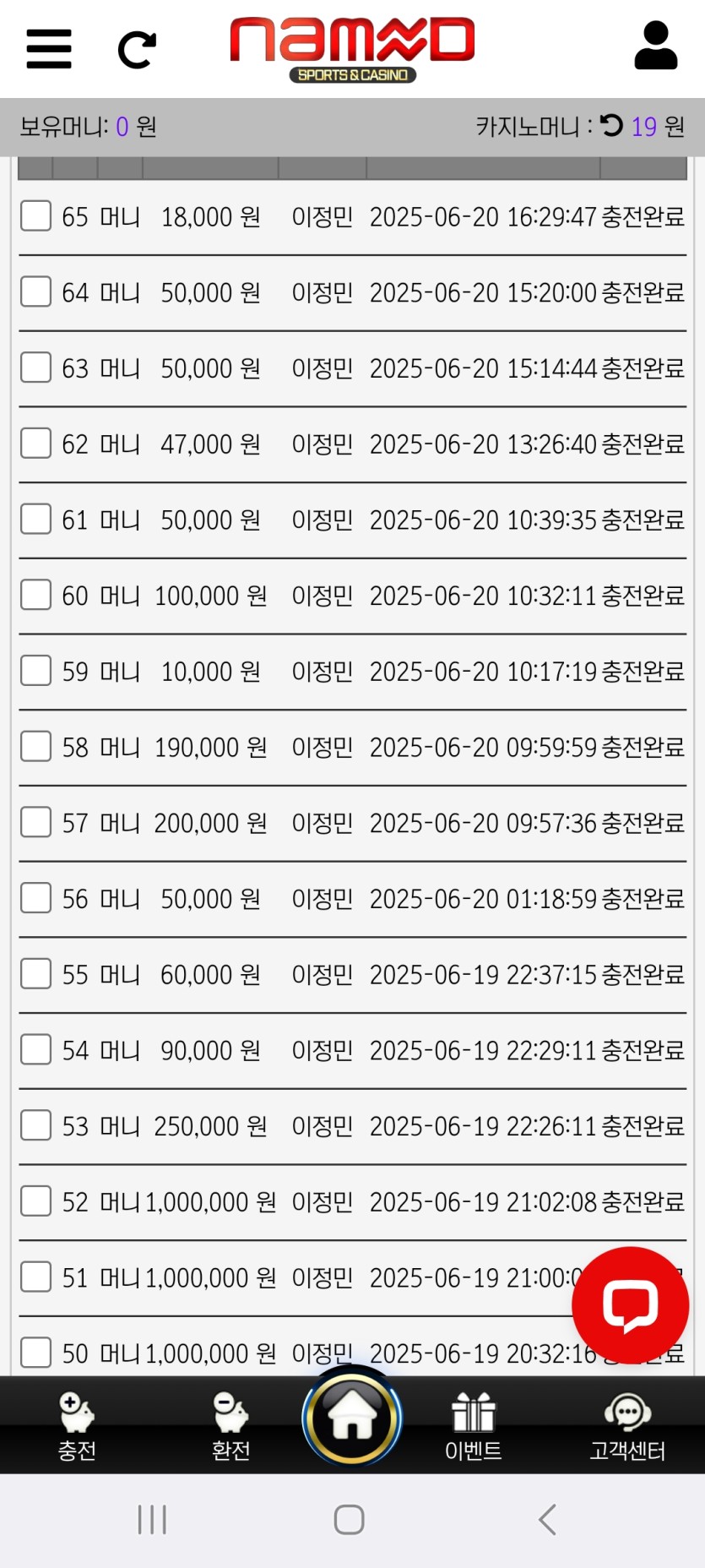 다양한 이벤트와빠른 충전환전이좋네요