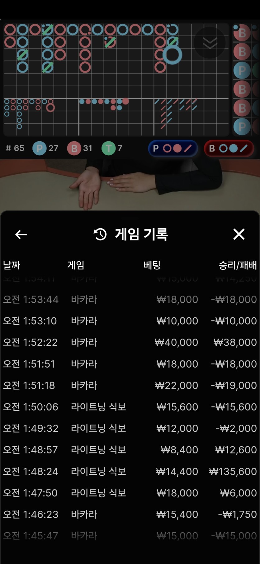 식보로도 가끔씩 고배당이 터져서 나름 쏠쏠해서 머리식힐겸 식보 소액으로도 자주가는데 가끔씩 맞아주네요 !