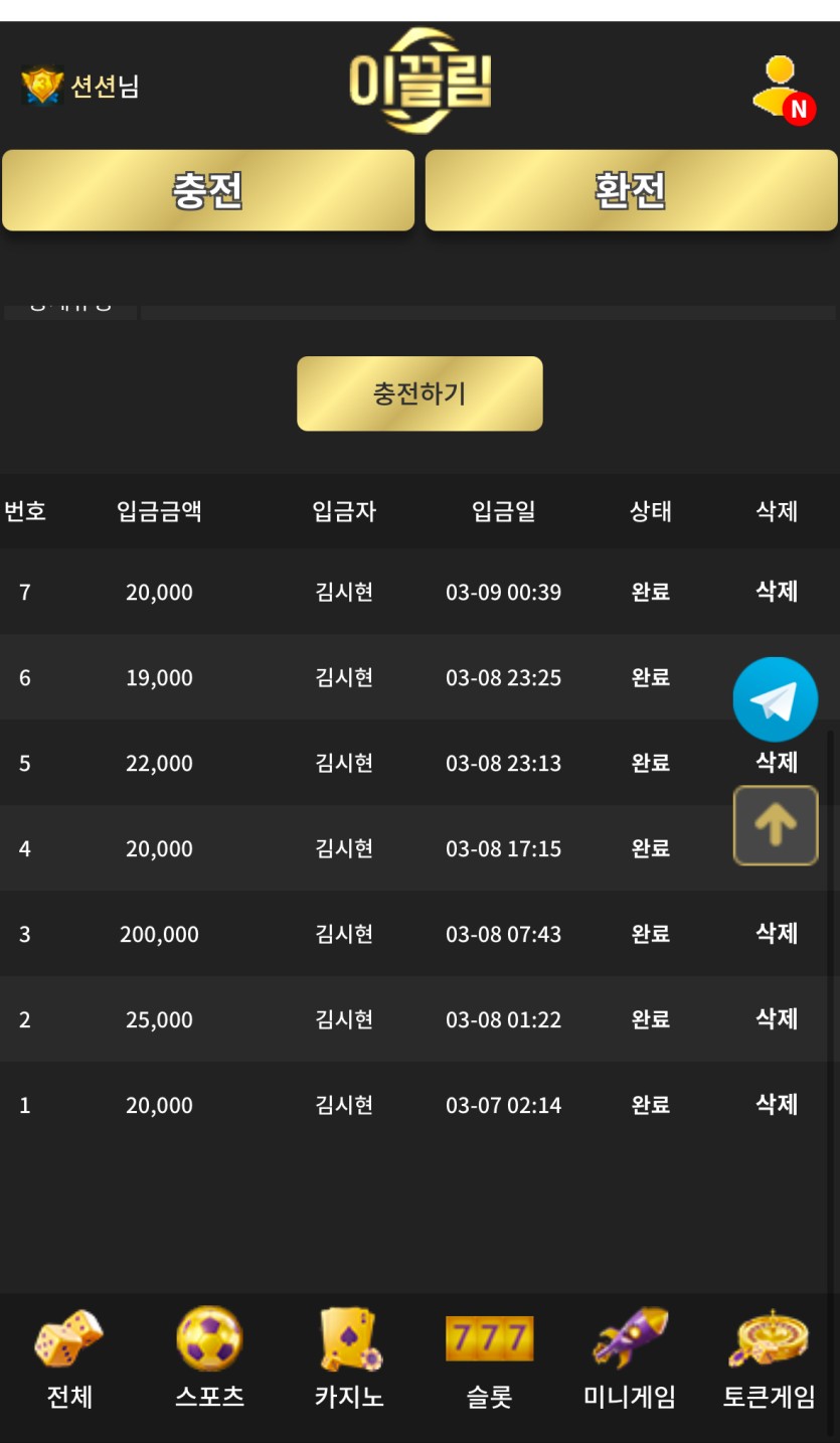 이끌림을 소개합니다 충환전 완전 빠르고요 안전합니다