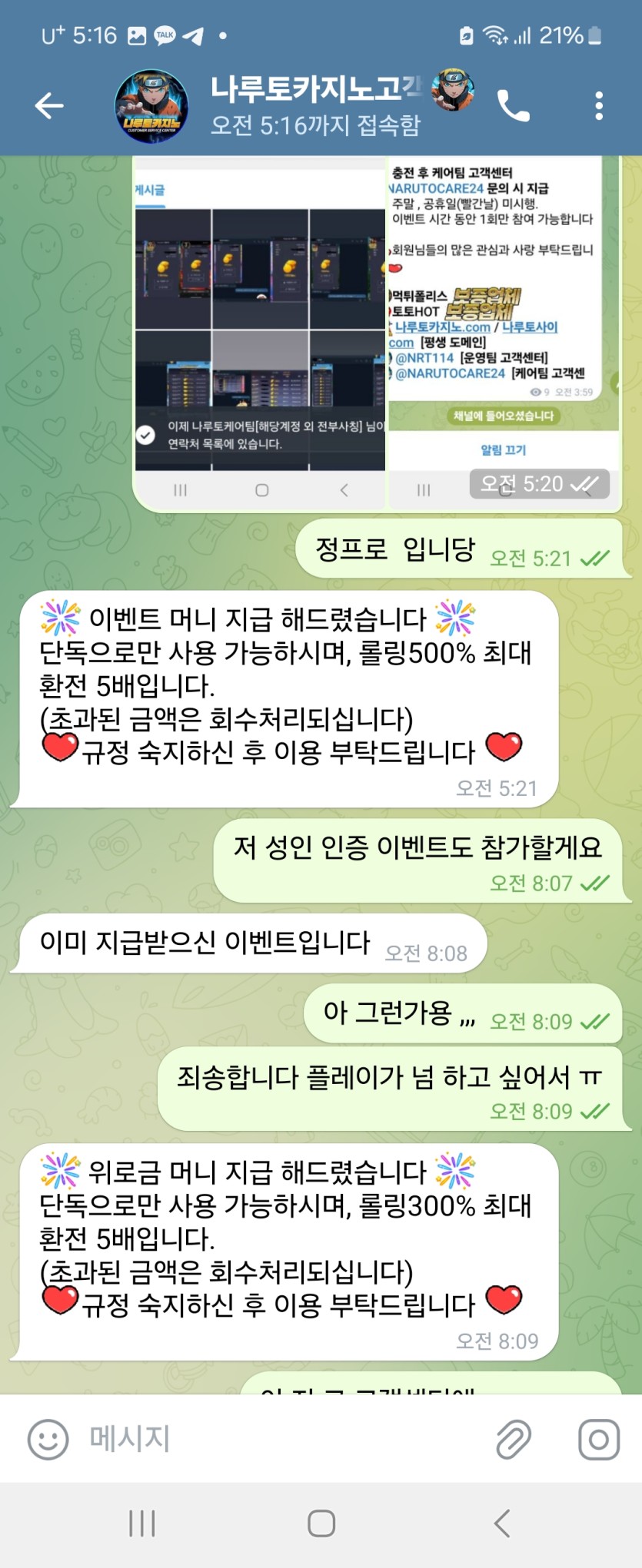 나루토 카지노 가입후 이용중입니다 !